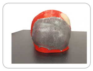 MR. Jatin had to loose large parts of his cranium due to severe Cranial Osteomyelitis. After successful treatment to control the infection, Medicad was approached to develop customized cranial plates for this complicated condition. Medicad team decided to go for a multi-material plate development approach to keep the cost down while maintaining aesthetics and to prevent infection relapse. PMMA with antibiotic was used as the material of choice to cover highly infected area while thin plate Titanium was used for the frontal and parietal regions so as to adjust for modification to defect edges during Cranioplasty.