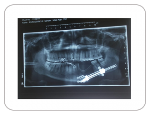 A 35 year old male had a visible defect in the left side of his mandible. Medicad Implants developed and manufactured a customized distractor to aid in Transport Distraction procedure on the patient. The segmented mandible was successfully distracted over a length of 30mm with a satisfactory outcome.